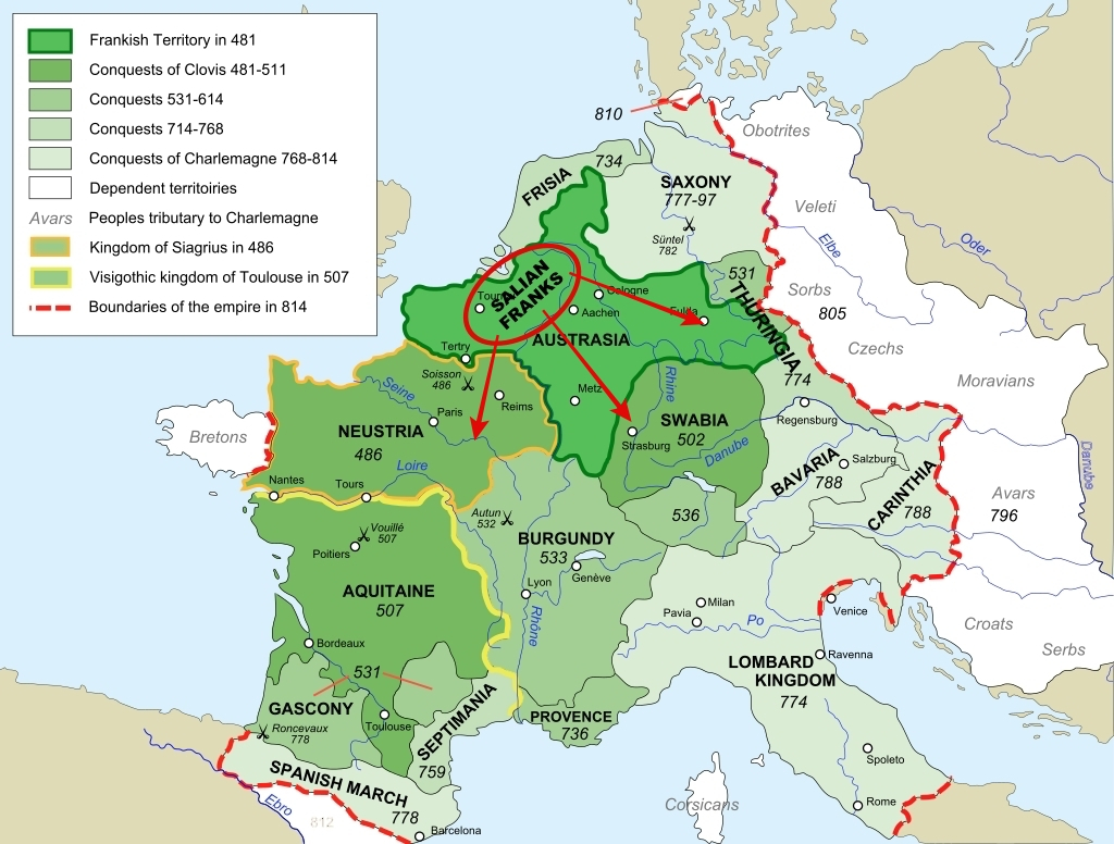 Figure 1—Expansion of the Salian Franks, 481-814 AD [1]