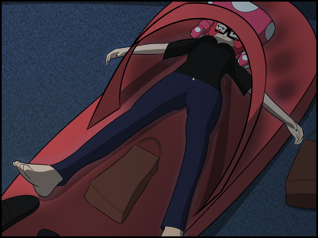 | I’d gotten so used to stinking people out that I’d forgotten it only worked with my flats. And without anything else to drive people away, I’d have to resort to the last technique. “FIRE! FIRE!” Not something to joke about, but that word forced the rest of these innocent people to flee the building. While they escaped, I returned to the back area, finding Minh T. stuffing the arcade’s bags like she would her own. And Captain Toad went from dominating the cashier to having his neck underneath the human’s foot. Ugh! We Toads and our stupid body strength! After receiving his fifth or sixth stomp, Captain Toad finally used his head. Literally. “GAH!” Butting the cashier’s leg, the Toad shakily got onto his feet. And he was quick to the draw, reclaiming his baton and aiming for Illepacs’ body. “Too slow!” Right before the baton connected, the human ducked under and rammed into Captain Toad head-first. The sharp sound of crackling glass was like nails on a chalkboard. When the screaming abruptly ended, Minh T. and I waited breathlessly. To our fear, Captain Toad’s body lay in a sea of glass, and no tears streamed from him. He was stiff and unmoving from head to toe. “Don’t panic,” I said, preparing to calm Minh T. before the situation could worsen. “I’m calling the cops, you maniacs,” the cashier yelled, reaching for a wired phone. “No, you won’t!” I popped off my slide and slapped Illepacs. Yet even when this pasty human took the blow, the phone’s bright dial tone continued. Well, time for more property destruction. Without a second thought, I ripped the cords out the phone, then pulverised it with my remaining slide. “Heh, a little fight in you.” Why wasn’t he phased!? Didn’t he get that my foot was shredding through his valuable hunk of plastic? “They got the alarm,” he chuckled. “They’ll be here before you can even move.” “Then I guess we oughta make out like bandits.” I revved for a roundhouse kick. “HAA!” THUD! Oh-no. He caught my leg halfway through the kick and spun me into the wall. I immediately reached for his body—something to claw at—but in seconds, the jerk slammed me into the counter. Reminder that the counter had so much broken glass that it resembled an arctic cavern. Despite not being torn to shreds yet, Illepacs squeezed my neck like a toy. So even the act of screaming hurt badly. “Think you mushrooms can destroy my arcade and get away with it?” BAM! The swift punch to my back forced a slow, agonising cough out of me. Followed by some whimpering as the damage fully manifested. “Yeah, cry like a bitch,” he said, delivering blow after blow to my body. BAM!! “STOP IT!” With all my strength, I elbowed his abdomen. Now that the bastard had lost his grip, I finished that roundhouse kick to blast him into the wall. Across the counter, Minh T. was blue in the face. “Let’s just go, Toadette!” I nodded, taking a step forward. SMASH! Ah… Whatever struck me in the head was raining in several pieces. Little white chunks followed by a splash of water. A snow globe? This wasn’t the time to observe pretty particles, but the hits on my cap and back knocked all the wind out of me. Above me came breathing so hot, I’d swear a dragon was about to torch me. “Forget the other guys coming. I’ll just save them the hassle.” Seeing the shadows on the ground, I shrieked. In his hand was a long blade, and he’d fully swung back. My arms wouldn’t budge to defend me, and so I clenched my teeth in anticipation. If I survived, I’d have to watch the Star Festival over TV in a hospital! “Don’t do it! Please!” Minh T. screamed. BANG! Where was the pain? Where was the blood that should’ve spilt out my cap? After that ear-piercing noise, my back crumbled under an enormous weight. Was this some chance to escape? I scurried away, then looked down to see… The cashier grabbing his chest, coughing violently. But right below him, a river of blood grew darker by the second. Nope, nope! If I didn’t look away, I was gonna get queasy! “EW! EW!” I checked my feet to make sure they were still pristine… Oh, thank the stars. Minh T.’s eyes shrunk until they were nothing but pinpoint specks. But right at my side, still holding an arm up at Illepacs, was Captain Toad. Wow. I’d never seen a compact firearm so up close in Toad Town. Yet right now, the blue weapon emitted yellow smoke, and the aftermath was dying on the floor. “You killed him.” Minh T.’s voice choked. “Star Gun, dumb-dumb.” Captain Toad waved his weapon in the air. Waved it a bit too carelessly since he lined the barrel up to my nose. “But going for his heart might’ve been smarter now that you mention it.” Then I heard the scariest sound. The sound of car doors opening and slamming right outside the building. “They’ll handle him,” I said. I wriggled my toes into my slides and picked up what bags remained. Anything left behind would just have to stay. “Where do we go?” “Back entrance.” Captain Toad ushered us in, locking the door and barricading it with any tool. Chairs, desks, remaining stock. Unfortunately, we weren’t in the clear—not by a long shot. This was just a backroom, and the true exit was through another door. Worst of all, the hotel sat on the other side of this dirty city. Please don’t tell me we’ll have to run the whole distance. Especially with all these bags! Heck, I’d abandon the bags at this point just for safety. “Alright, Minh T., put that brain to work.” Captain Toad hit her on the back. “You know any ways we can leave without them—” “I never had to run for my life here! Why’d you break the counter in the first place!? We could’ve gone home without being criminals!” He folded his arms. “Excuse me? So, I should’ve just let him disrespect you and play us? Both of you just sat there. At least I did something.” “And where did that something get us?