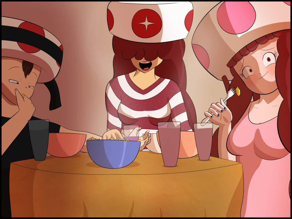 | Awakening in a room I hadn’t lived in for so long invoked a feeling of nostalgia. Like the path here, a lot of things were in the same place. All those boxes… When I ran my finger along the nightstand, I couldn’t spot a trace of dust. All that seemed to change were my stuffed animals. Instead of them comfortably lying in the bed, I occupied their former place, breathing slowly as I poked at the tubes going up my nostrils. Somehow the slight vibration of whatever contraption I was connected to both soothed and disturbed me. It was the only constant noise here, uninterrupted. To think I’d end up back here after having done such a good job of staying away. I took a deep sigh. All those memories were piling up, one after the other, as if to mock me for all my efforts to stay hidden for so many years. But so what? No matter who it hurt, I’d done the right thing and wouldn’t change it for anything. If I’d never left, Minh T. and I could’ve gone our separate ways. And if I hadn’t been homeless, I would’ve never considered applying to Peach’s castle. And without all of that, I’d have missed out on tons of events leading me to my present self: a 19-year-old Toad with a budding interest in feet. For better or for worse, this was my own unique story. One whose events were too far away to be changed. “Ew, sweaty…” I rubbed my soles together under the sheets. “Sweaty, why are my feet so sweaty?” The heat from earlier should’ve died down by now. I pulled back to covers to give my feet some air, and then they kind of cooled. They shouldn’t have bothered to cover me, whoever put me in this bed. Not only were my feet slimy and nasty to the touch, but my pits left two wet holes in my shirt. Wait, was it even my own shirt? It was white. My vest was nowhere to be seen. My pants also weren’t covering my legs. These were instead loose black shorts. Let’s just get out this bed and— “GAH!” Already forgot I was stuck to this device. It was some small box with a switch, and thanks to the tight tubes, it damn near tore my nose off. “I’m coming!” The door flew open and smacked the wall, Minh T.’s eyes bulging as she ran to my side. “Please get me off this thing.” “It makes sure you’re breathing. You’re gonna have to wear it again when you’re asleep, ‘kay?” As she took me off the machine, she explained that I’d been unconscious from about 12:00 to 6:34, the current minute. Great, so today was very productive. More importantly, she said that the poison I’d been doused in would last at least three days. Even that wasn’t promised to be the end of it. And since this poison mainly targeted my bloodstream, this soreness wouldn’t easily die down. Grr… If I wasn’t healthy by the time the Star Festival rolled around, six days from now, Peach was gonna feel my wrath. I’d done too much for this yellow-haired bimbo to miss out on something grand like this! Minh T. put a hand over my forehead. “Ooh, you’re sweaty.” “I didn’t shower?” “We wiped you off a lil’, but no, that’s still gotta happen. I’ve gotcha, don’t worry one bit.” Looking down, Minh T. had also switched to a pair of pyjamas. Similar to me. A pink shirt and black shorts that couldn’t obscure her feet in the slightest. Those blue raspberry toes… “I really need to stop skipping meals,” I groaned, snorting the snot like a pig. “Come on and eat, silly. But,” she whispered as she got closer, “you should know that she’s here.” Good news simply couldn’t come without bad news, huh? I immediately turned back to bed, head high as I wished not to see my mother at the moment. Eh… But those sheets wouldn’t be too nice to rest on now that a sweat stain in the shape of a Toad had formed. Smelt nasty even from a distance. “Your precious princess is gonna pay for getting me sick like this.” I shoved myself past Minh T. “It’s not her fault, Toadette.” “It’s not her fault, Toadette.” A sharp scorn vibrated through my voice. “You’re lucky you didn’t get sick in that cold Forever Forest. She’s lucky Penelope didn’t get sick walking barefoot in there. My luck ran out effective today. Sending us on all these missions is gonna get one of us seriously hurt, watch.” She blankly stared. “You should have more confidence in Her Highness. Anyways, our situation with the coin case just went from bad to worse.” “Tell me something I couldn’t have predicted. What’s up?” “He already delivered it. And Dane T. can’t get that close to the Scapellis themselves outside of making deliveries. He said it’d be all the way in their main operation area, wherever that is. I don’t want the Star Festival to be—” My finger covered her lips. “If Her Highness wants a job done well, she will wait. I just need time to think, okay?” When we took the first step into the hall, I understood better why someone like her—a girl who preferred to bundle herself in thick clothing while she slept—was wearing short-sleeved pyjamas. It was incredibly warm, even warmer than the typical castle was. Although the toasty atmosphere was welcome, quite cosy, it was difficult to appreciate when my body’s temperature fluctuated. Carpet was still as low as when we moved in. One of the better things about this place because if all the floors were tiled, I’d have left dozens of cold footprints behind. Now out of the dark hall and into the light living room, two sets of eyes were on me. Well… I could only see one set of eyes, but I knew she was staring as well. Both DT and my mother were at that same old dinner table, one barely big enough for two people, let alone three. Once I saw them, my heart began to run in the opposite direction. It didn’t want to approach. It wanted me to bounce from this apartment and never return. But I had a few choice words for my terrified life source. “Grow up.” If this wasn’t gonna happen today, tomorrow wa