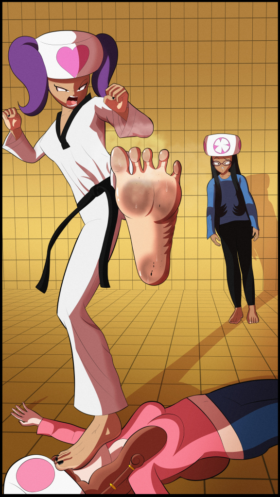 While hesitant, Minh ultimately swallowed her worries and lowered her right foot onto Jasmin’s face. Jasmin sighed, prompting Minh to raise a brow in confusion. But perhaps Jasmin was simply sighing from the pressure placed on her body. Minh took a deep breath and set her left foot on her face. Normally it felt good to have someone’s face under her feet, but right now she could only pray she wouldn’t crush Jasmin.