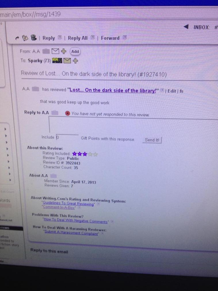 Here's some photos of a review a nice helpful person did. Like the last one I sent a copy of to the SM. In essence the only solution was to block the twat. Yes. twat. I'm not into calling people silly immature names. Like twat. Especially fellow reviewers. But.