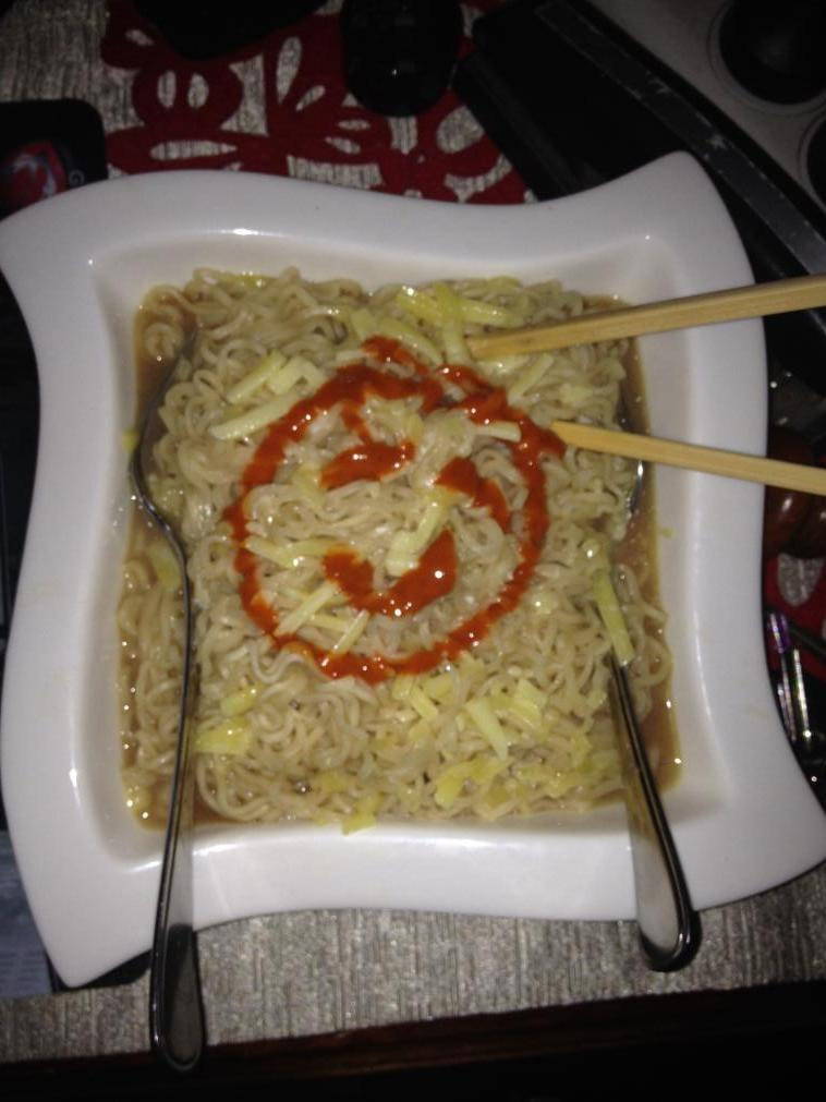 Anyway, my Red John Noodle dish awaits me. This is my speciality for this week. Turn green with jealousy. Even greener with envy. Cos you ain't getting any.