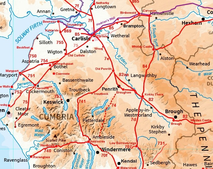 Now we take a look at what's called the Junior Branch of the Wharton pedigree, though it actually becomes our primary branch. Its junior because it begins with Gilbert Wharton (b.1395), younger brother of Thomas Wharton (b.1388), the latter being the branch through which the Whartons attained peerage. Yet, while the senior branch was off fighting wars and immersing themselves in politics—only to die out in debt and outlawry—it was the junior branch that was amassing property and building fortunes. Gilbert de Querton had been born at Croglin, which had been in the family since Emma de Hastings (co-heiress of Croglin) married Gilbert’s 2nd great-grandfather, the elder Gilbert de Querton (b.abt. 1250). However, this younger Gilbert moved to Kirkby Thore after he was married and we have his wife, Joan Kirkby, to thank for that. It was Joan who inherited Kirkby Thore from her father, John de Kirkby. Kirkby Thore The first reference to the village is in the 1179 Register of Holm Cultram, where it appears as Kirkebythore and sometimes Kirkby-Thure as it is spelled in the act passed in 1812 enclosing the commons. Kirkby means "village with a church" and Thore may reference either the old Norse god Thor, or from the old British word for a tower. It suggests that either a church or a Scandinavian temple was there by the 10th century, a forerunner of medieval parish church of St Michael that now sits close to the site of an old Roman fort. The village consists of clusters of buildings, pleasantly situated near the confluence of the Eden and Trout-beck, almost 5 miles northwest of Appleby, partly on the Penrith Road. A hall and a great part of the village were built out of the ruins of Whelp Castle, which stood on rising ground called Burwens. Ownership descended from the Whelp family who held it mid-12th century. It passed to the Wharton family through whom it was held until the death of William Wharton in the mid-18th century. From there, ownership of the town passed to the Tufton family, lords of the barony of Appleby, though John Wharton of Skelton Castle remains the present lord of the manor and owner of a large portion of the land. The village was on the site of a Roman cavalry camp called Bravoniacum. Roman coins, sandals, urns, earthen vessels, and the cusp of a spear have been found. There are three late 1st-century cavalry tombstones, as well as evidence of an Algerian-born camp commander, most likely a 3rd-century cavalry officer called Agathopus. The camp lay on the Stainmore Road, the major east-west Roman road that ran eastward from Bravoniacum, through old Penrith, Carlisle, and eventually to western seaports (Figure 1). Another Roman road, called the Maiden Way, led north from Bravoniacum to Whitley Castle, and then on to the fort of Carveron at Hadrian's Wall. The Maiden Way was probably constructed to facilitate lead and silver exploitation near Alston in the uplands of the northern Pennines. In 2016, a blend of radar and light technology called LIDAR revealed another Roman road running southwest from Kirkby Thore to the Roman fort at Low Borrowbridge. So, it seems that the Wharton's had inherited a major crossroad used by the Romans. Although, since the roads were built at different times and seemingly used two Eden River crossings, it was never an actual crossroad, but more of a spaghetti-type meeting of roads. The Wharton Diaspora While the family of Gilbert's older brother was living at Lammerside in Kirkby Stephen until Wharton Hall was built, all in Westmoreland County, the rest of the Wharton's began spreading out and building fortunes of their own. These places were in north central and northeastern England, though Whartons could be found throughout England. It all began, however, in Kirky Thore. Each successive generation spread out from there—over the Northern Pennine Hills (or around them) to North Yorkshire County (Gillingwood and Skelton Castle) and Durham County (Old Park, Dryburn, and Offerton) in northeastern England (Figure 2). 1 Gilbert Wharton of Kirkby Thore m. Joan Kirkby Gilbert's lands at Kirky Thore passed to Sir John I Wharton. 2 Sir John I Wharton of Kirkby Thore m. Isabel Lancaster John Wharton and Isabel Lancaster had two sons, John II and Christopher, ancestor of the Whartons of Offerton in Durham County. John I Wharton died about 1465, and was succeeded by his eldest son John II. Isabel was the daughter of John Lancaster. ▶︎ 3a Sir John II Wharton of Kirkby Thore m. Lady Elizabeth of Fenwick John II Wharton became counselor to Lord Clifford during the reign of Henry VII, from 1485–1509. He married Elizabeth, daughter and co-heiress of Fenwick of Wallington, Northumberland County. Lady Elizabeth Fenwick adds an interesting complexity to our family tree—her ancestry can be traced to the de Morvilles. Elizabeth's mother was Joan Leigh, daughter of Sir William Leigh (1376-1428), a knight and prominent member of Parliament. The Leighs were a family of some antiquity, having over the generations acquired extensive estates in Cumbrian villages and within the city of Carlisle. Sir William was the Sheriff of Cumberland for three terms and remained on the county bench until his death. Joan's grandmother was Margaret Multon whose great-great grandather married Ada de Morville, and thus connects the Whartons to the de Morvilles. Ada's father was a first cousin of Hugh de Morville who, as noted in How the Whartons Got Their Name, participated in the murder of Thomas á Becket. It was this Hugh de Morville who gave his Querton estates away, which eventually landed in the hands of the first Gilbert de Querton. So the lands she came into as a result of marrying John II Wharton was inherited by John from her own ancestor by a circuitous route. 3b Christopher Wharton of Offerton 4 Sir Gilbert Wharton of Kirkby Thore Gilbert married a pair of sisters. From the sons of these two sisters came the ancestors of Old Park (and then Offerton), Gillingwood (and t