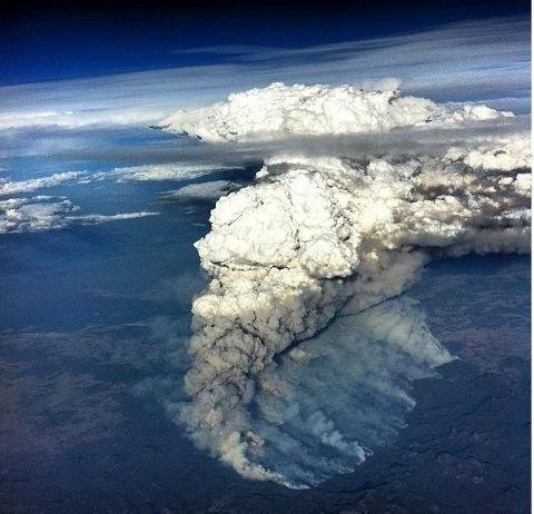 This photo was taken from a commercial airliner at 14,000 feet and the plume was measured at more than 14 kilometres long.
